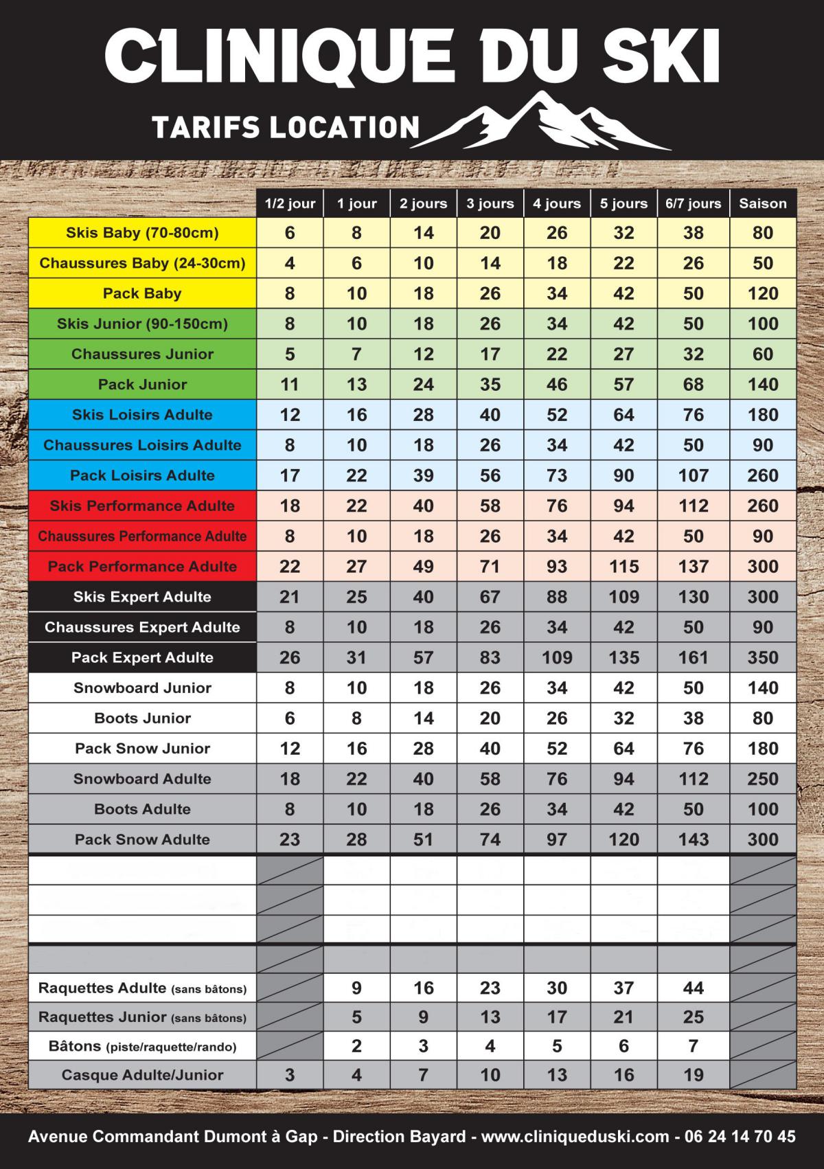 Consultez nos tarifs de location 2025/2026 ci-dessous. Pour gagner du temps en magasin, réservez votre matériel directement via l’onglet Réservation.